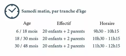 Tarif : A l’unité : 6€ par bébé + 2 accompagnateurs